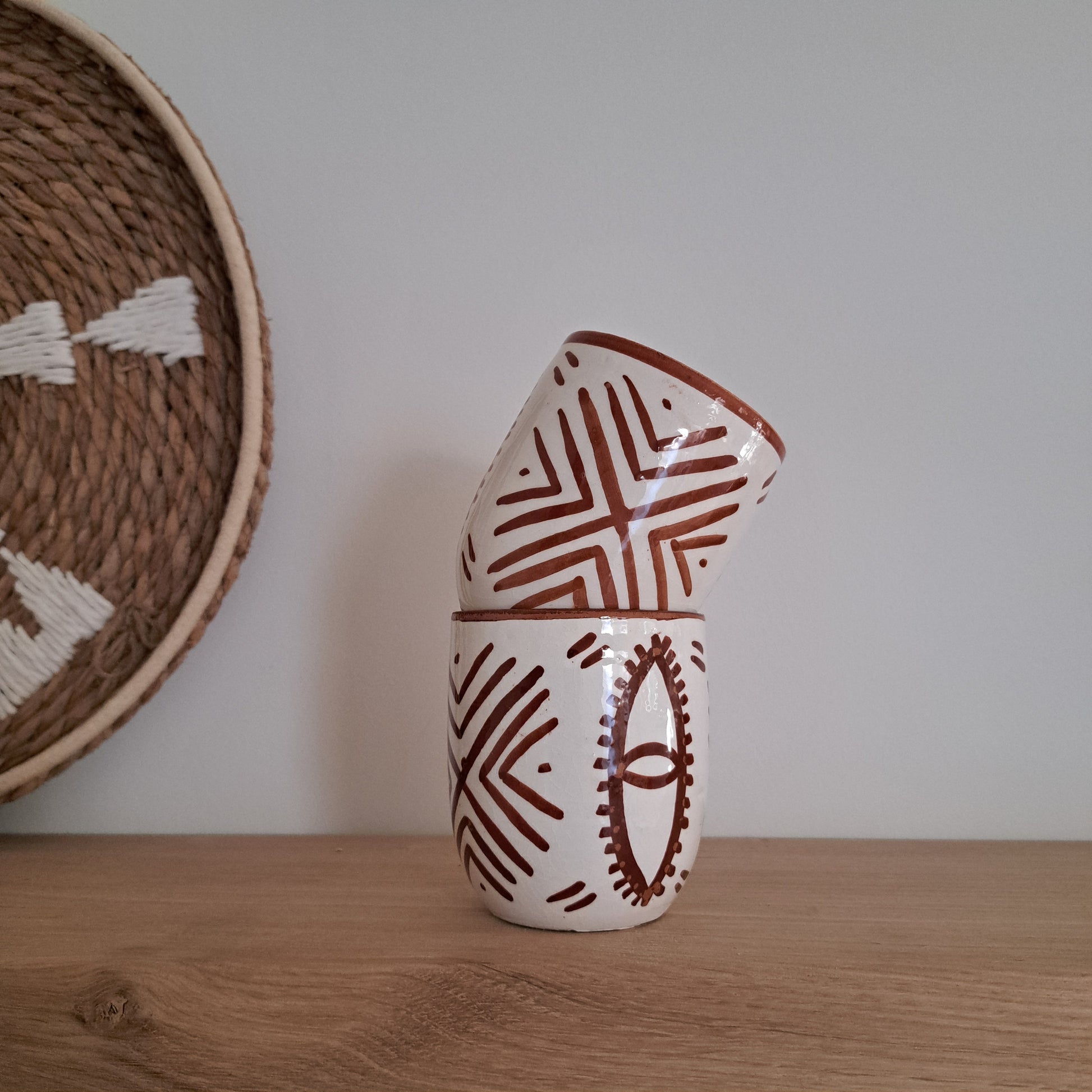 Breng karakter en authenticiteit in je serviescollectie met deze handgemaakte Marokkaanse mok van Woontof. Deze unieke keramieken mok is met de hand gevormd én beschilderd, waardoor elk exemplaar een eigen verhaal vertelt. Perfect voor liefhebbers van ambacht, wereldse invloeden en sfeervol tafelen.